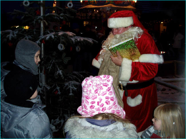 „Danke, Euch allen zusammen!“ sagt ein überglücklicher Weihnachtsmann.