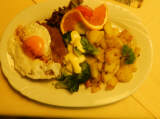Von der Galerie der Gaststube aus kann man entspannt durch hohe Fensterscheiben das Geschehen in der Reithalle verfolgen. Ein bisschen wie in der „Spanischen Hofreitschule“ in Wien. Doch im Landauer kann man beim Zuschauen ein Wiener Schnitzel essen. Hier an der Küste wird es zum „Holsteiner Schnitzel“ oder „Panierten Schnitzel“. Mittwochs und donnerstags werden „Schnitzeltage“ angeboten. Kreative Speiseangebote zeichnen den Landauer aus, u.a. nach Wunsch Seniorenportionen oder die täglichen Mittagsgerichte für 6,50€. Sie variieren wöchentlich (klicken Sie auf den Link). Das wird gerne genutzt und mundet nebenbei auch dem Portmonee.